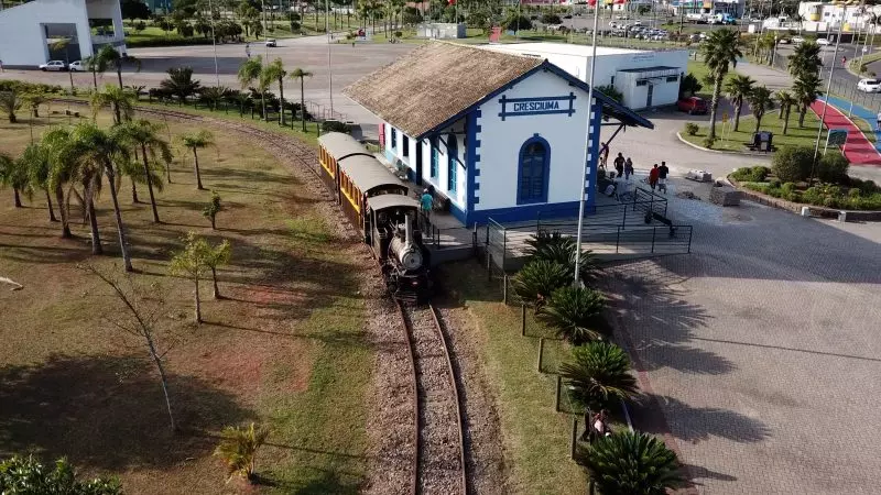 No Parque das Nações Cincinato Naspolini, a atração é a mini locomotiva em homenagem à Ferrovia Tereza Cristina, que transportava carvão no início do século XX.