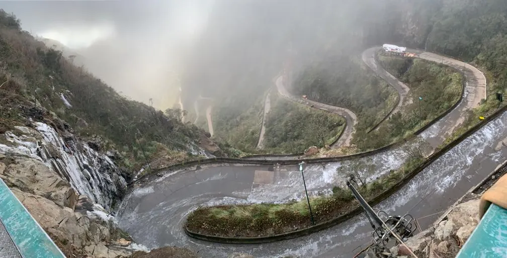 Na Serra do Rio do Rastro, em Lauro Müller, a neblina cria um cenário único para contemplação e fotografia, transformando o dia nublado em experiência memorável, desde que respeitadas as condições da estrada.